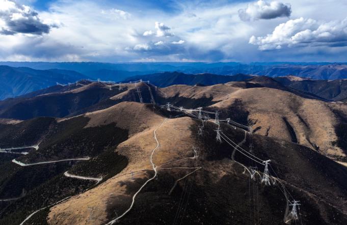 金上—湖北特高压工程四川段线路俯瞰。(江伟摄)