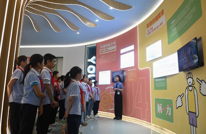 浙江省台州市仙居县安洲小学的学生在未成年人法治教育基地了解防校园欺凌的法律知识。新华社记者 黄宗治 摄