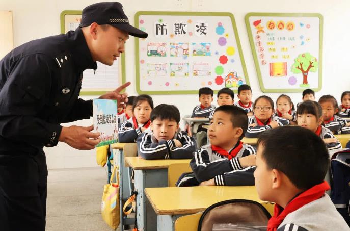 在浙江省湖州市德清县乾元镇中心小学,乾元派出所民警为小学生讲解如何识别和应对校园欺凌行为。新华社发(倪立芳摄)