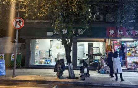 成都一家宠物医院开在小区超市旁,离居民区很近。受访者供图