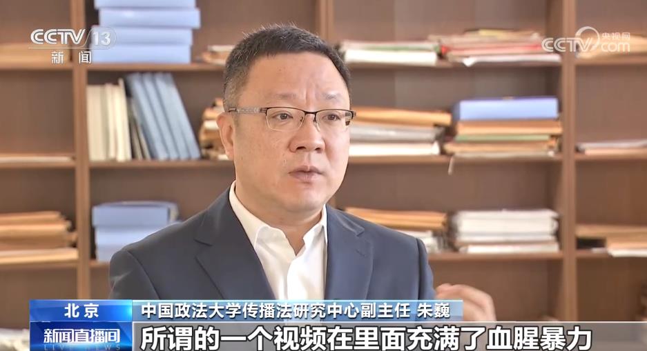 中国政法大学传播法研究中心副主任 朱巍:很多人说告知了用户,是不是这样的视频就都不违法了。实际也不是这样,比如说你告诉用户是拍的一个所谓的微短视频,所谓的一个视频在里面充满了血腥暴力,充满了教唆别人犯罪,充满了传授赌博的方法,充满了那种违法违规的内容,这个也是一个违法的视频,所以光是标记可能还不够。