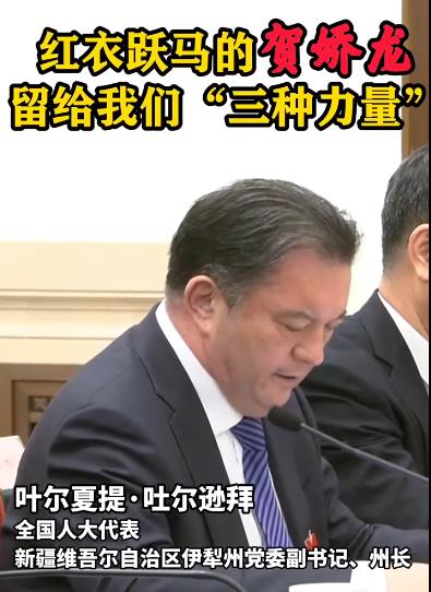 全国人大代表、新疆维吾尔自治区伊犁州州长叶尔夏提·吐尔逊拜谈起前不久因公离世的贺娇龙时说:“贺娇龙是人民的好公仆,真抓实干的好干部,她身上表现有三种力量。”第一,信仰的力量;第二,为民的力量;第三,实干的力量。