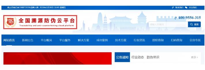 1月17日,有网民通过中央网信办违法和不良信息举报中心(下称举报中心)官网举报,反映名为“全国质量监督防伪系统”“中国产品监督315防伪查询系统”“315产品防伪查询中心”“全国产品质量12315防伪查询系统”等4家网站,使用“315”或“12315”数字注册域名,网站内容展示“国家某某平台”“全国某某平台”“315”等名称标识,并在搜索引擎上进行推广,通过定制所谓的“国家级溯源防伪标签”牟利,存在误导消费者的行为。