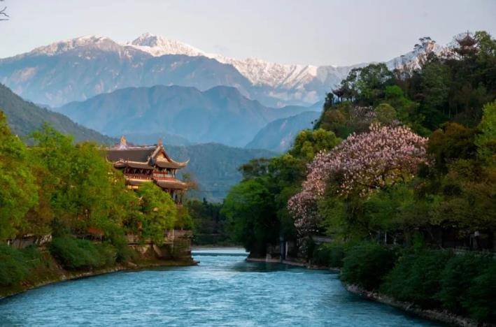 雪山下的都江堰(来源:都江堰融媒曾岷 摄)