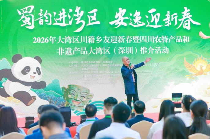 12月20日,由四川省人民政府驻广州办事处主办的“蜀韵进湾区·安逸迎新春 2026年大湾区川籍乡友迎新春暨四川农特产品和非遗产品大湾区(深圳)推介活动”在深圳开幕。