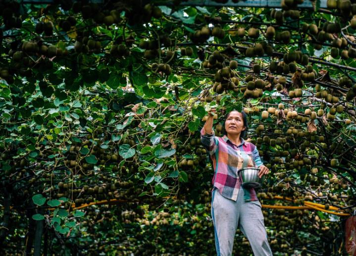 如今,果园里已挂满果实:一个个拳头大小的红心猕猴桃结实饱满,果皮覆着细密绒毛,轻捏富有弹性。正在采收的工人说:“往年得仔细挑大果,今年随手一摘都沉甸甸的。”她随手称了一颗,显示213克,“这还算中等个头,大的能超过300克。”