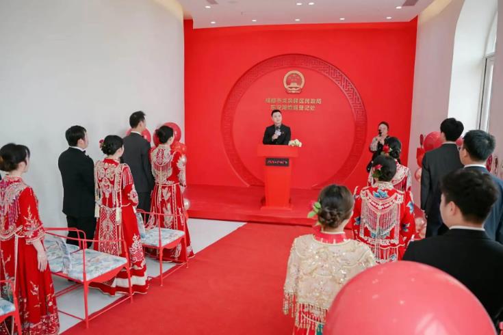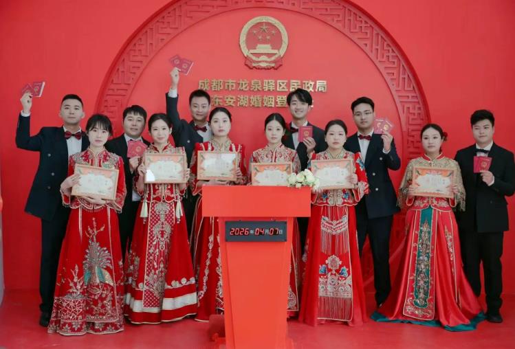 东安湖公园婚姻登记处的全新揭牌,不仅为成都婚俗服务版图增添了新亮点,更推动龙泉驿区婚俗改革、生态文旅、健康生活与消费经济实现深度融合。未来,龙泉驿区将持续以文明婚俗为引领,以“健康的爱、健康的生活”为价值底色,以公园式服务为载体,不断丰富婚俗文化内涵,拓展婚旅经济业态,让婚俗新风浸润城市,幸福产业持续升温。