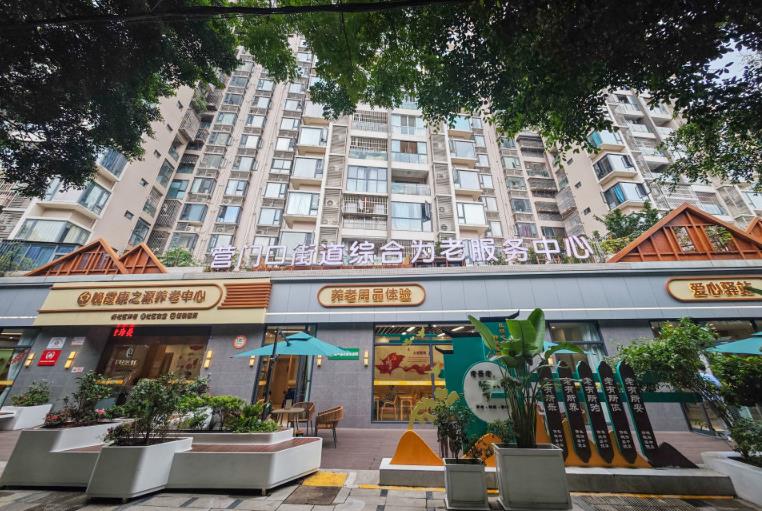 在成都市金牛区营门口街道,60岁以上老人占比超过20%。营门口街道综合为老服务中心就开在居民楼下,占地1400平方米,提供食、养、医、娱等多种服务,成为社区老人家门口的“银发之家”。