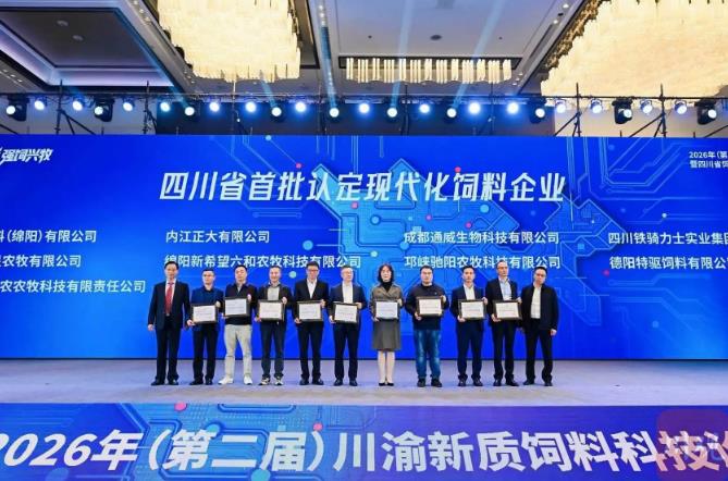 3月26日,正大饲料(绵阳)有限公司有了一个新标签:首批四川省现代化饲料企业。当天,2026年(第二届)川渝新质饲料科技论坛暨四川省饲料行业年会在成都市举行,活动首次评选出了正大饲料(绵阳)有限公司等9家四川省现代化饲料企业。四川省饲料工业协会会长陈代文告诉记者,这些企业是从全省600多家饲料企业中筛选出来的,在降本增效、数智化转型等方面具有重要的引领作用。