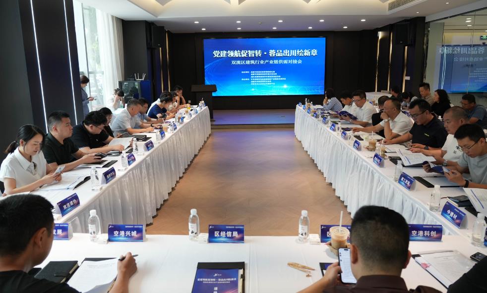 6月27日,“党建领航促智转·蓉品出川绘新章”双流区建筑行业产业链供需对接会在四川成都双流经开区举办。区属国有平台公司、建筑行业及相关领域企业等近40家企业、单位参会。