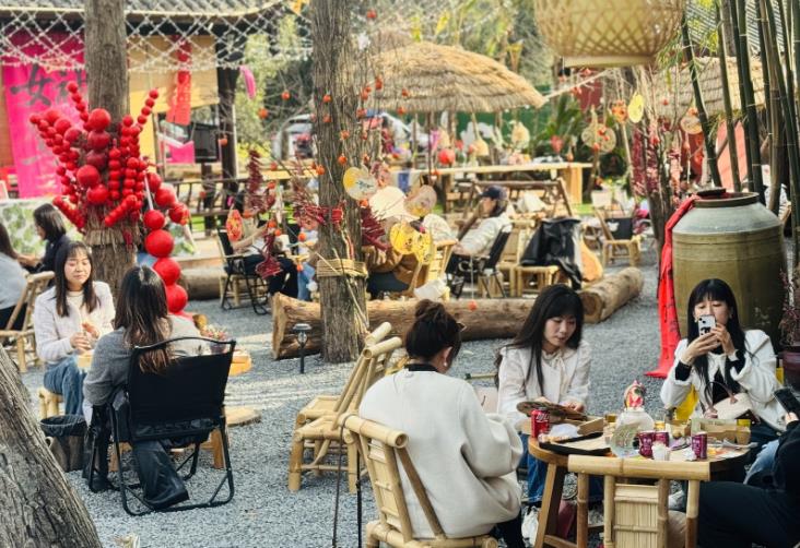 林盘院落间,几家特色民宿挂出了“满房”牌。“以前赶场是买了就走,现在是吃了还要住下。”一位带着孩子的游客说。